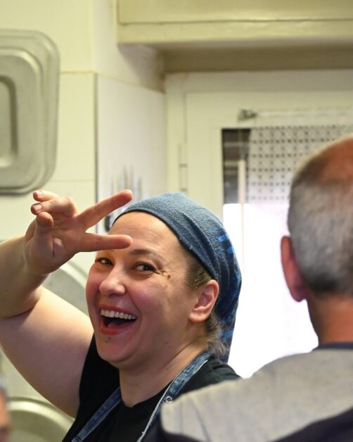 La grinta di Daniele Brugna , ormai polentaio ufficiale, non vi spaventi : è una roccia dura ma di gran cuore e braccia robustissime per girare e rigirare il pasticcio di mais.